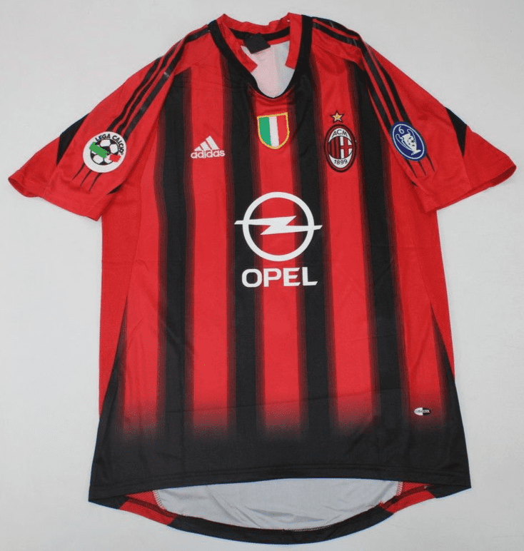 Get your hands on the iconic A.C. Milan 2004-05, Home with Patch & Fonts retro football shirt today. Official remake with high-quality finish perfect for any collection. Order now from Legends Gallery. Retro football kits with worldwide shipping available.