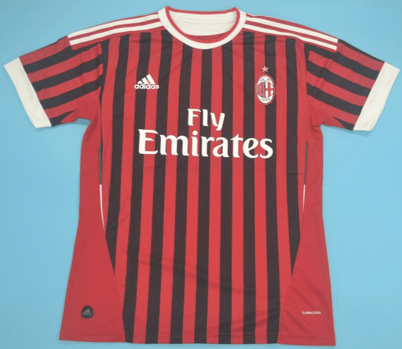 Get your hands on the iconic A.C. Milan 2011-12, Home retro football shirt today. Official remake with high-quality finish – perfect for any collection. Order now from Legends Gallery. Retro football kits with worldwide shipping available.