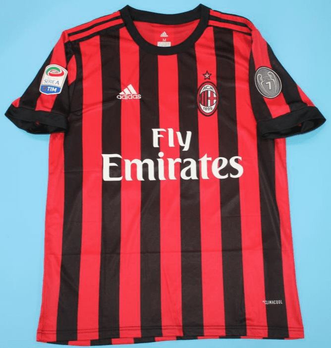 Get your hands on the iconic A.C. Milan 2017-18, Home, with UCL & Fonts retro football shirt today. Official remake with high-quality finish perfect for any collection. Order now from Legends Gallery. Retro football kits with worldwide shipping available.