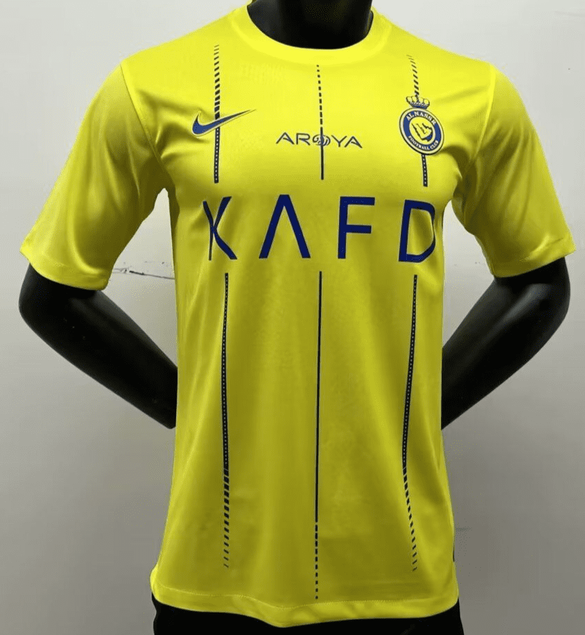 Get your hands on the iconic Al-Nassr FC 2023-24, Home retro football shirt today. Official remake with high-quality finish perfect for any collection. Order now from Legends Gallery. Retro football kits with worldwide shipping available.