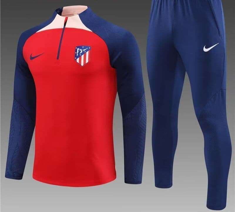 Get your hands on the iconic Atletico Madrid 23-24, Red with Dark Blue Sleeve Tracksuit Kid Size retro football shirt today. Official remake with high-quality finish perfect for any collection. Order now from Legends Gallery. Retro football kits with worldwide shipping available.