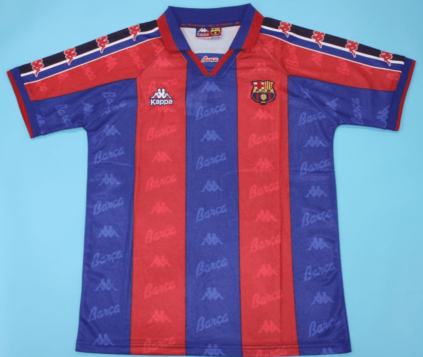 Get your hands on the iconic Barcelona, 1995-97, Home retro football shirt today. Official remake with high-quality finish perfect for any collection. Order now from Legends Gallery. Retro football kits with worldwide shipping available.