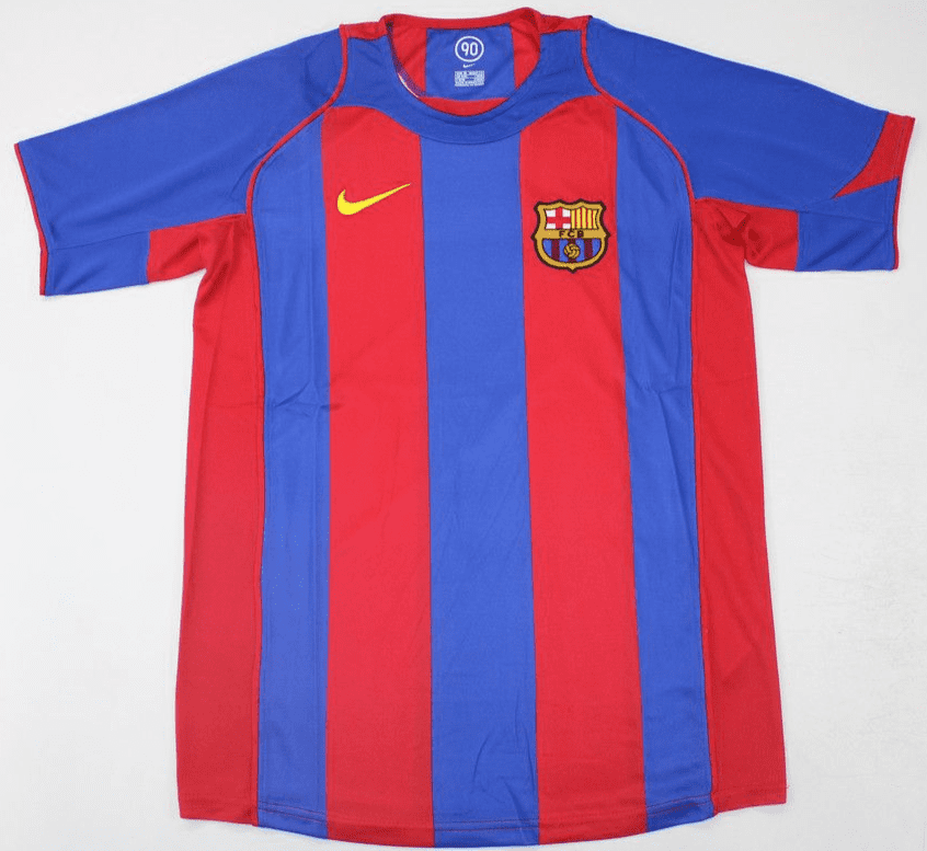 Get your hands on the iconic Barcelona 2004-05, Home retro football shirt today. Official remake with high-quality finish perfect for any collection. Order now from Legends Gallery. Retro football kits with worldwide shipping available.