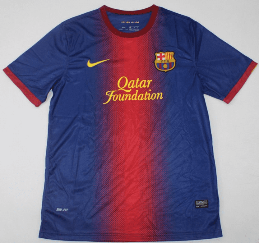Get your hands on the iconic Barcelona 2012-13, Home retro football shirt today. Official remake with high-quality finish perfect for any collection. Order now from Legends Gallery. Retro football kits with worldwide shipping available.