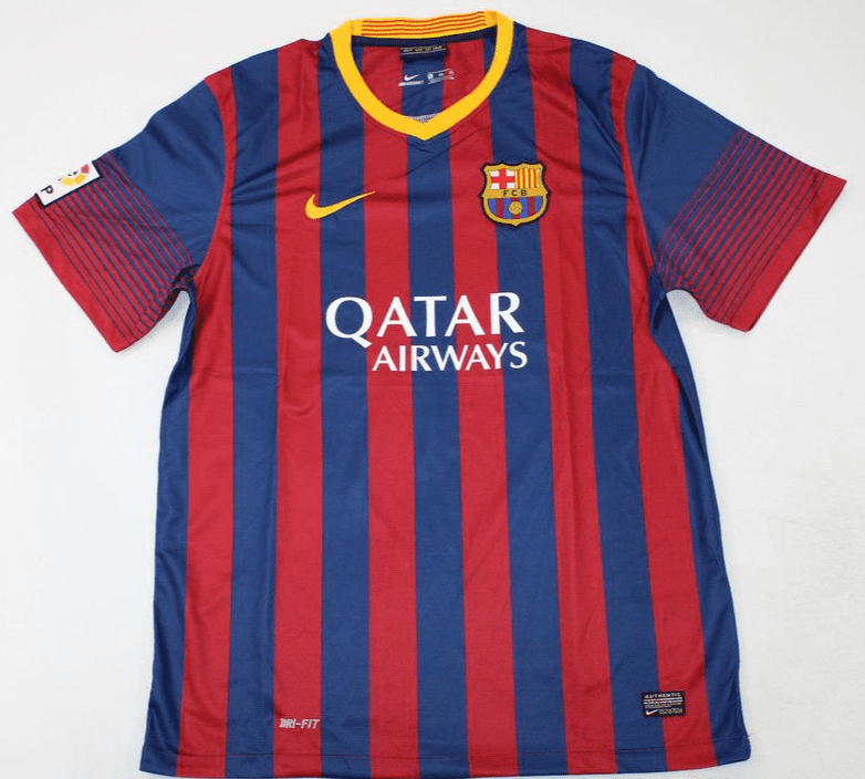 Get your hands on the iconic Barcelona 2013-14, Home retro football shirt today. Official remake with high-quality finish perfect for any collection. Order now from Legends Gallery. Retro football kits with worldwide shipping available.