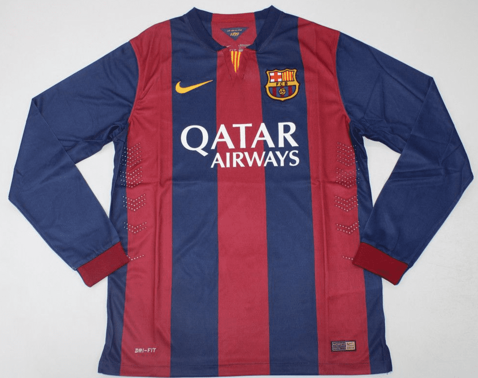Get your hands on the iconic Barcelona 2014-15, Home, Long Sleeve retro football shirt today. Official remake with high-quality finish perfect for any collection. Order now from Legends Gallery. Retro football kits with worldwide shipping available.