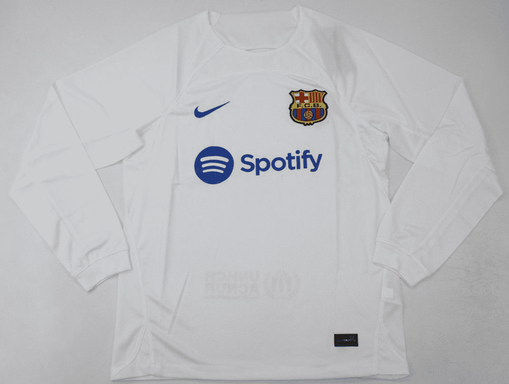 Get your hands on the iconic Barcelona 2022-23, White Away, Long Sleeve retro football shirt today. Official remake with high-quality finish perfect for any collection. Order now from Legends Gallery. Retro football kits with worldwide shipping available.