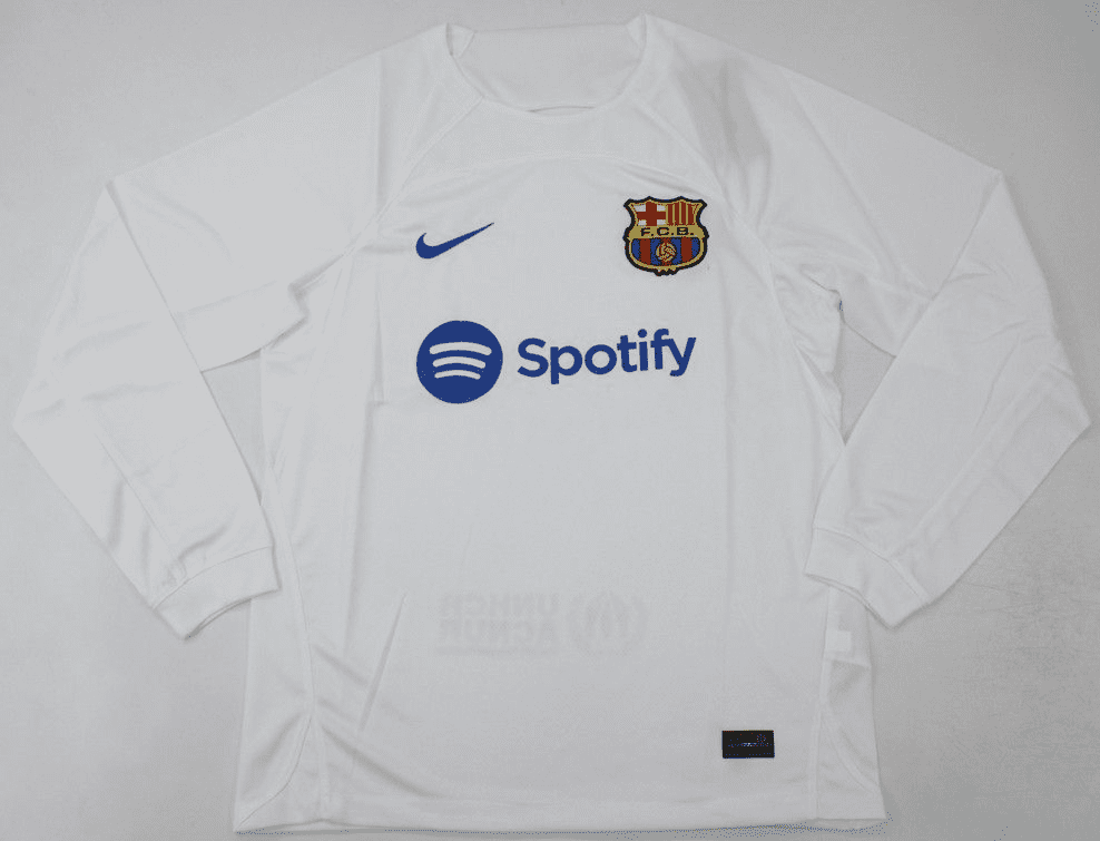 Get your hands on the iconic Barcelona 2023-24, White Away Long Sleeve Player Version retro football shirt today. Official remake with high-quality finish perfect for any collection. Order now from Legends Gallery. Retro football kits with worldwide shipping available.