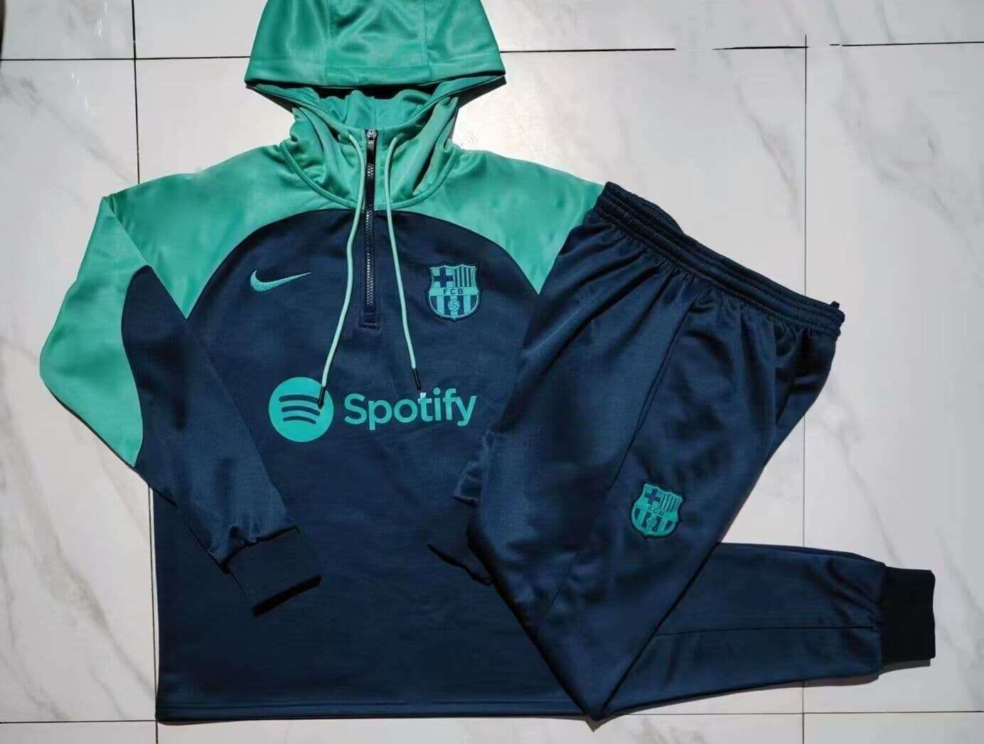Get your hands on the iconic Barcelona 23-24, Dark Blue with Green Tracksuit with Hood Kid Size retro football shirt today. Official remake with high-quality finish perfect for any collection. Order now from Legends Gallery. Retro football kits with worldwide shipping available.