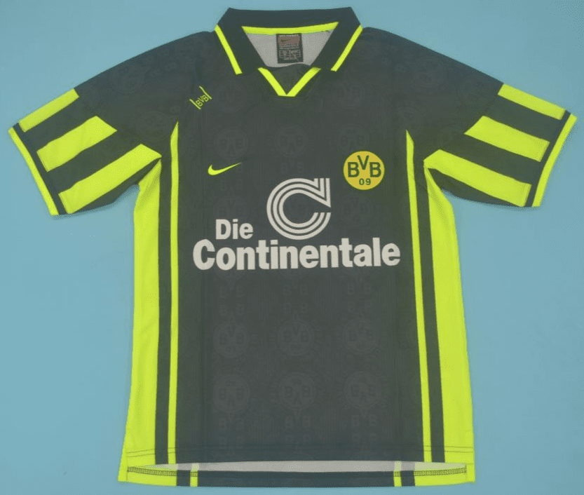 Get your hands on the iconic Borussia Dortmund 1996-97, Black Away retro football shirt today. Official remake with high-quality finish perfect for any collection. Order now from Legends Gallery. Retro football kits with worldwide shipping available.