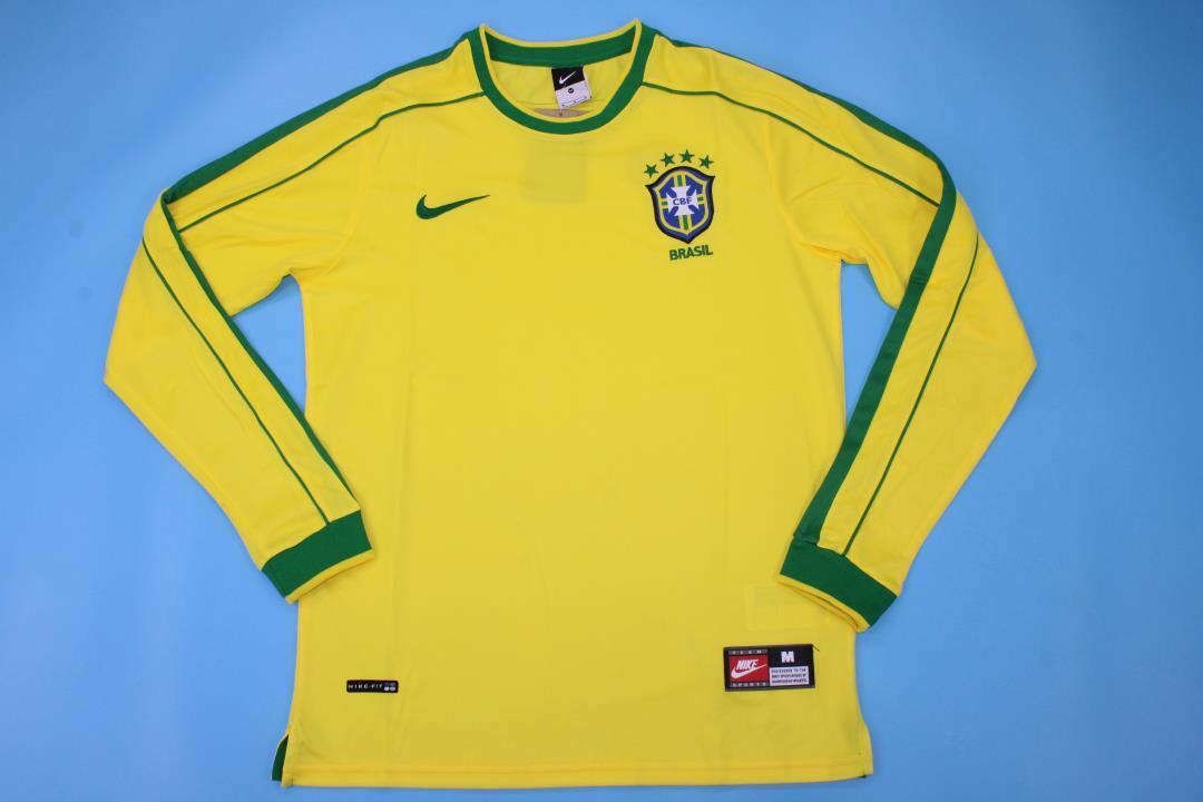 Brazil 1998 Home Long Sleeve retro football kit. Premium high-quality kit perfect for collectors and fans. Only £5 worldwide shipping. Classic retro design with amazing detail. Shop Brazil 1998 Home Long Sleeve retro kits today at Legends Gallery.