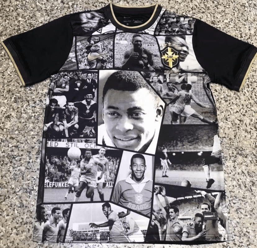 Get your hands on the iconic Brazil Pelé Version 2 retro football shirt today. Official remake with high-quality finish – perfect for any collection. Order now from Legends Gallery. Retro football kits with worldwide shipping available.