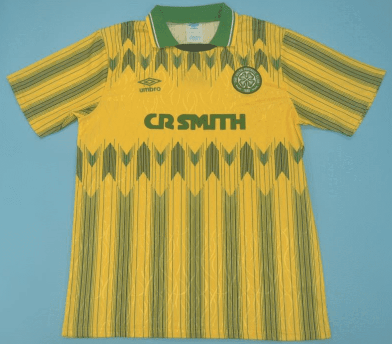 Get your hands on the iconic Celtic 1989-91, Yellow Away retro football shirt today. Official remake with high-quality finish perfect for any collection. Order now from Legends Gallery. Retro football kits with worldwide shipping available.