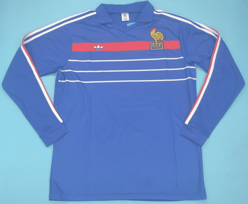 Get your hands on the iconic France 1984 Home, Long Sleeve retro football shirt today. Official remake with high-quality finish – perfect for any collection. Order now from Legends Gallery. Retro football kits with worldwide shipping available.