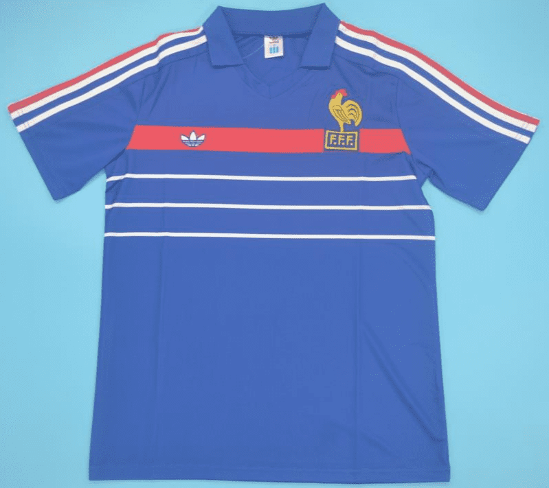 Get your hands on the iconic France 1984 Home retro football shirt today. Official remake with high-quality finish perfect for any collection. Order now from Legends Gallery. Retro football kits with worldwide shipping available.