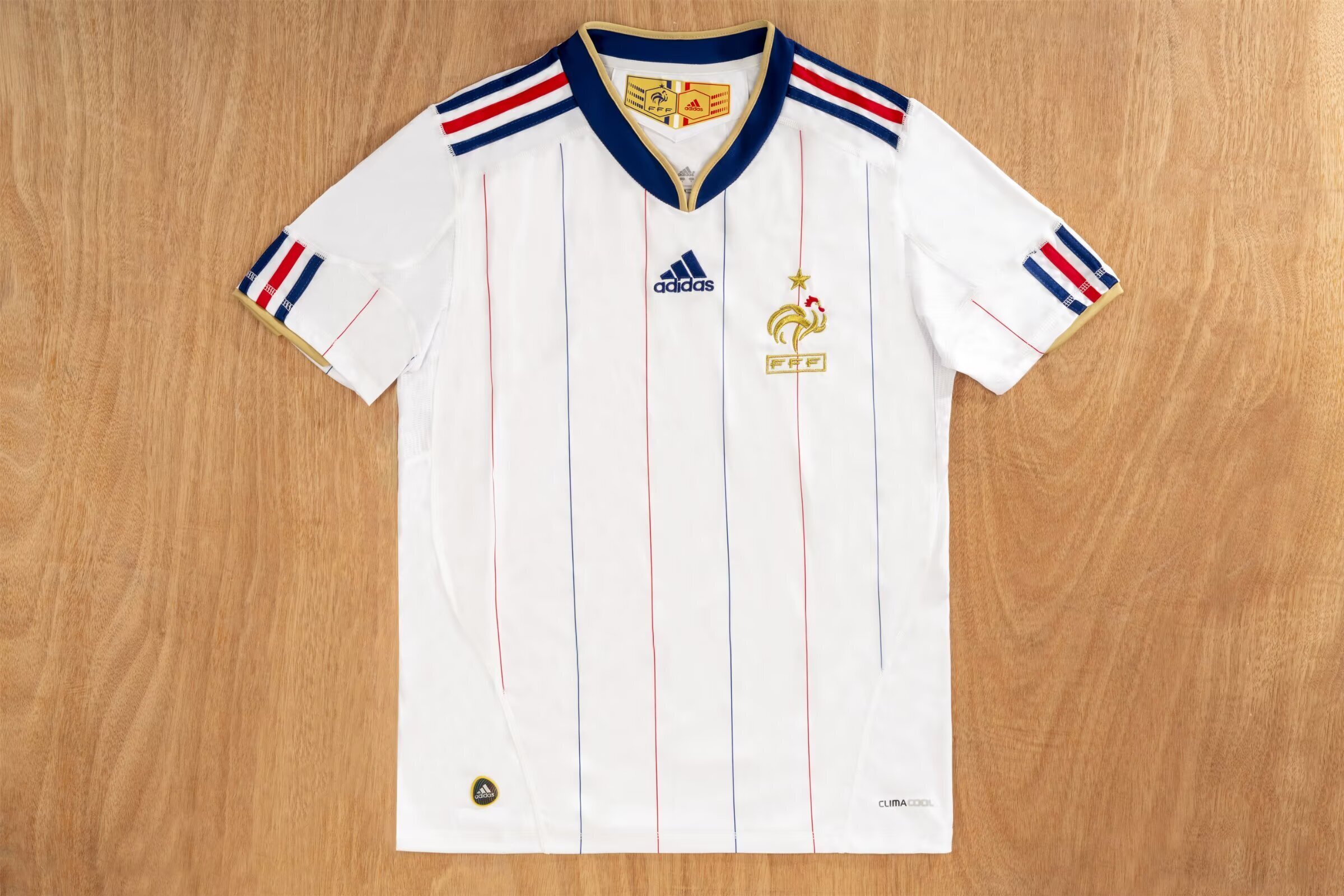 France 2010 Away retro football kit. Premium high-quality kit perfect for collectors and fans. Only £5 worldwide shipping. Classic retro design with amazing detail. Shop France 2010 Away retro kits today at Legends Gallery.