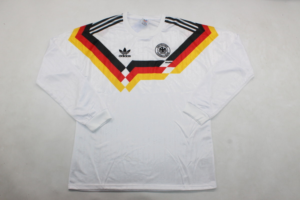 Germany 1990 Home Long Sleeve retro football kit. Premium high-quality kit perfect for collectors and fans. Only £5 worldwide shipping. Classic retro design with amazing detail. Shop Germany 1990 Home Long Sleeve retro kits today at Legends Gallery.