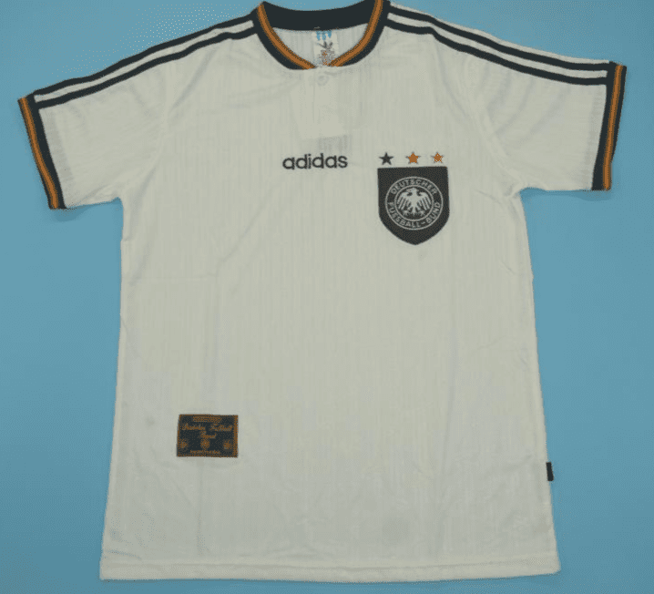Get your hands on the iconic Germany 1996 Home retro football shirt today. Official remake with high-quality finish – perfect for any collection. Order now from Legends Gallery. Retro football kits with worldwide shipping available.