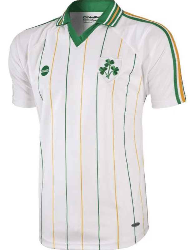 Get your hands on the iconic Ireland Retro Player Jersey White retro football shirt today. Official remake with high-quality finish perfect for any collection. Order now from Legends Gallery. Retro football kits with worldwide shipping available.