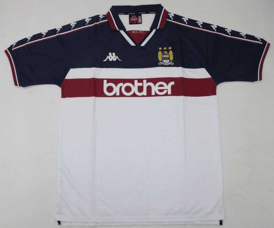 Get your hands on the iconic Manchester City 1997-98, Away retro football shirt today. Official remake with high-quality finish perfect for any collection. Order now from Legends Gallery. Retro football kits with worldwide shipping available.