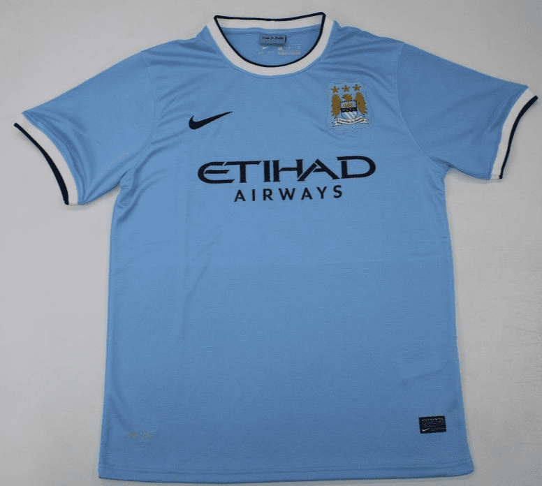 Get your hands on the iconic Manchester City 2013-14, Home retro football shirt today. Official remake with high-quality finish perfect for any collection. Order now from Legends Gallery. Retro football kits with worldwide shipping available.