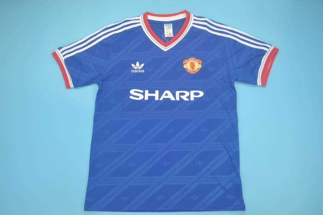 Get your hands on the iconic Manchester United 1986-88, Blue Away retro football shirt today. Official remake with high-quality finish – perfect for any collection. Order now from Legends Gallery. Retro football kits with worldwide shipping available.