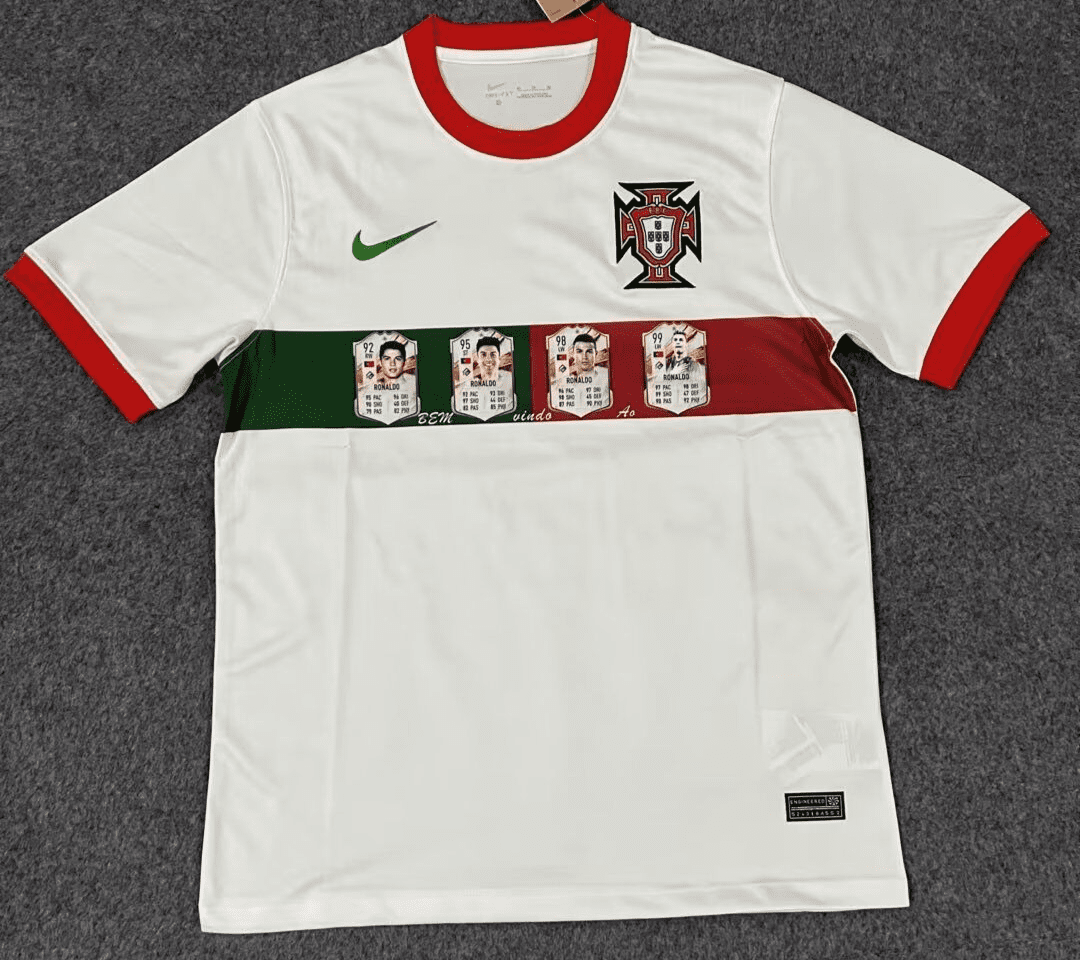 Get your hands on the iconic Portugal Ronaldo Version retro football shirt today. Official remake with high-quality finish – perfect for any collection. Order now from Legends Gallery. Retro football kits with worldwide shipping available.