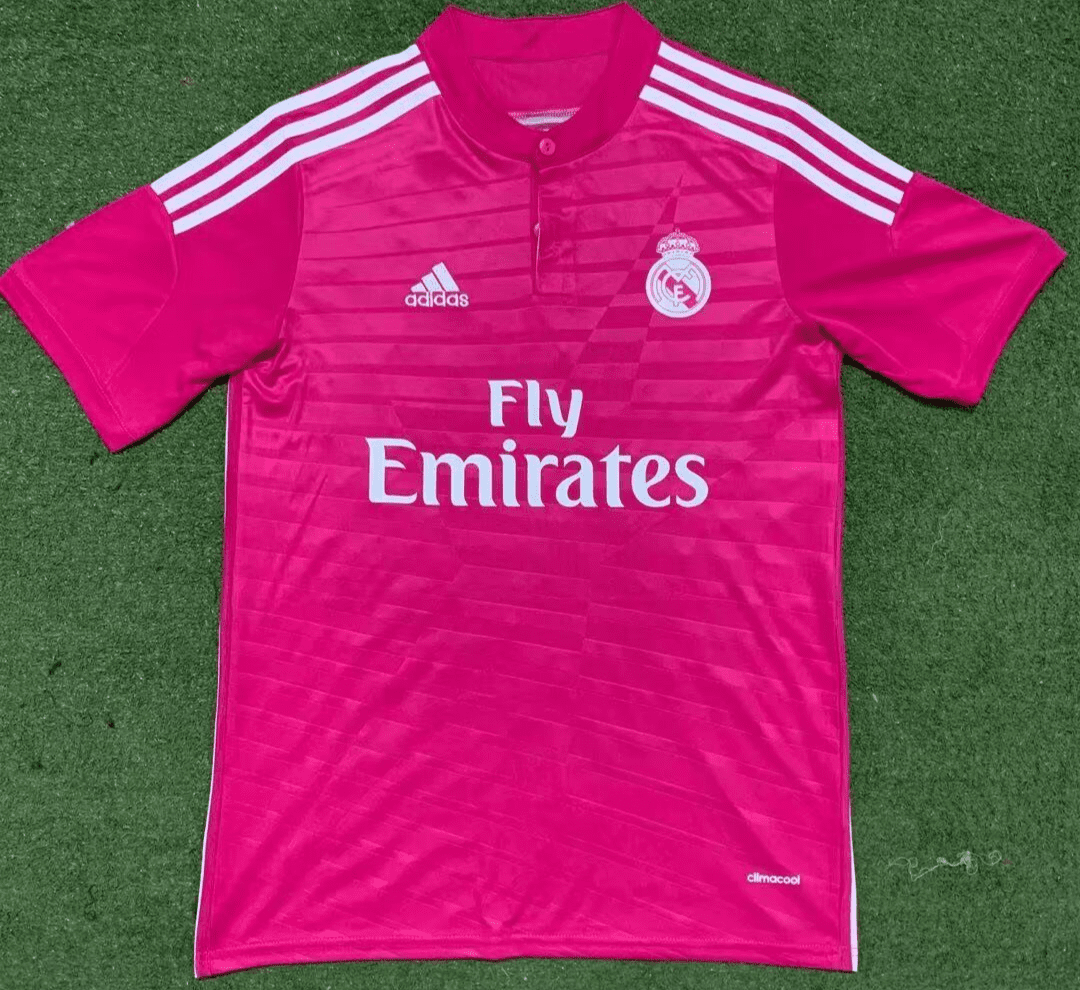 Get your hands on the iconic Real Madrid 2014-15, Pink Away retro football shirt today. Official remake with high-quality finish perfect for any collection. Order now from Legends Gallery. Retro football kits with worldwide shipping available.