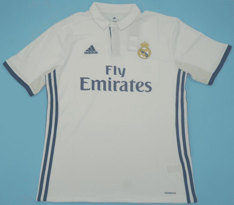 Get your hands on the iconic Real Madrid 2016-17, Home retro football shirt today. Official remake with high-quality finish perfect for any collection. Order now from Legends Gallery. Retro football kits with worldwide shipping available.