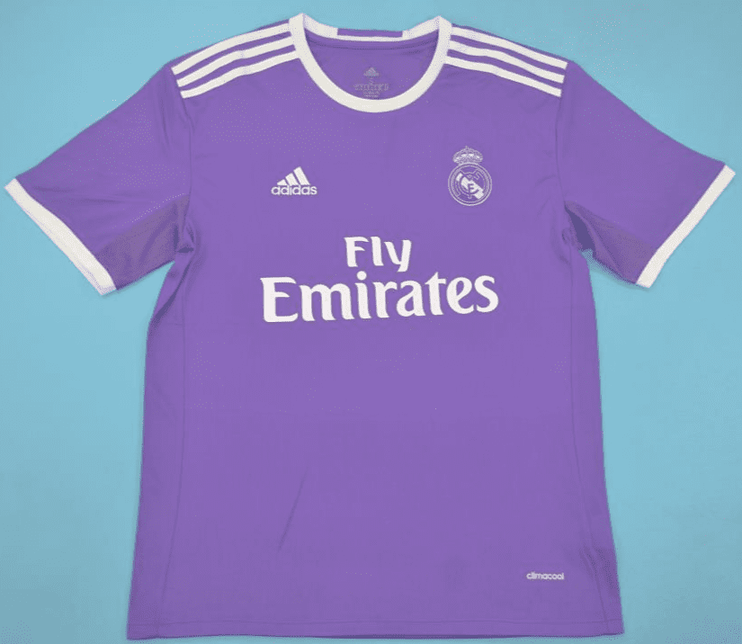 Get your hands on the iconic Real Madrid 2016-17, Purple retro football shirt today. Official remake with high-quality finish – perfect for any collection. Order now from Legends Gallery. Retro football kits with worldwide shipping available.