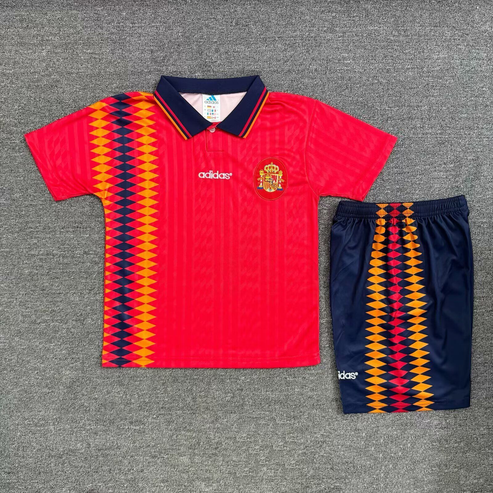 Spain Kids Home Kit 1994 retro football kit. Perfect for collectors and fans. Worldwide shipping available. High-quality replica with classic design. Shop Spain Kids Home Kit 1994 retro kits today at Legends Gallery.
